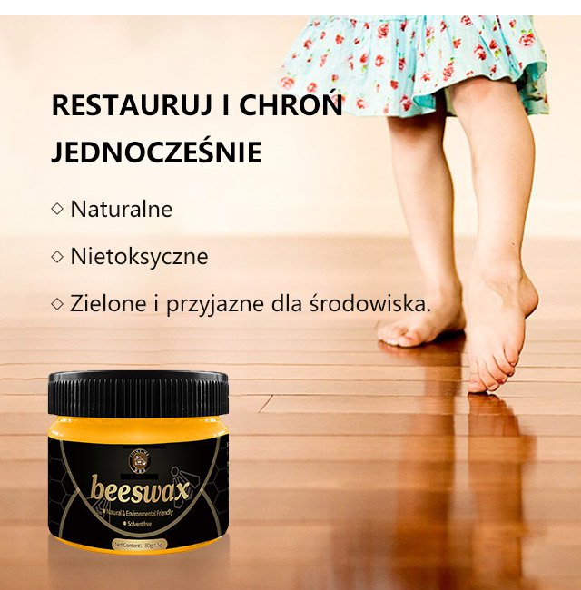 uniwersalny wosk pszczeli przyprawowy do drewna nie tylko czyści i poleruje drewniane meble, ale także poleruje meble z drewna tekowego, antyczne lub nowoczesne, stoły, biurka, krzesła, podłogi, ławki i inne.